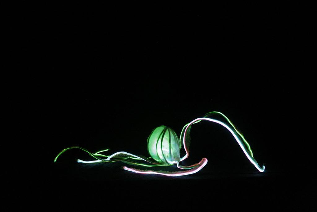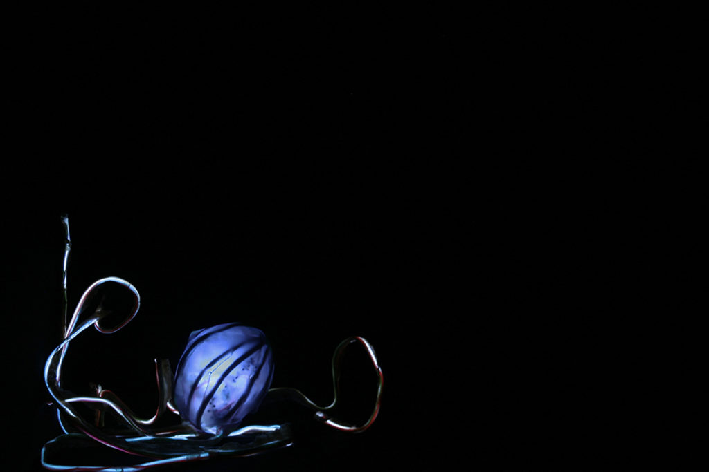 Materialien: Draht, Leuchtschnüre, Latexhaut, Leuchtkugel, Plastikdekoration